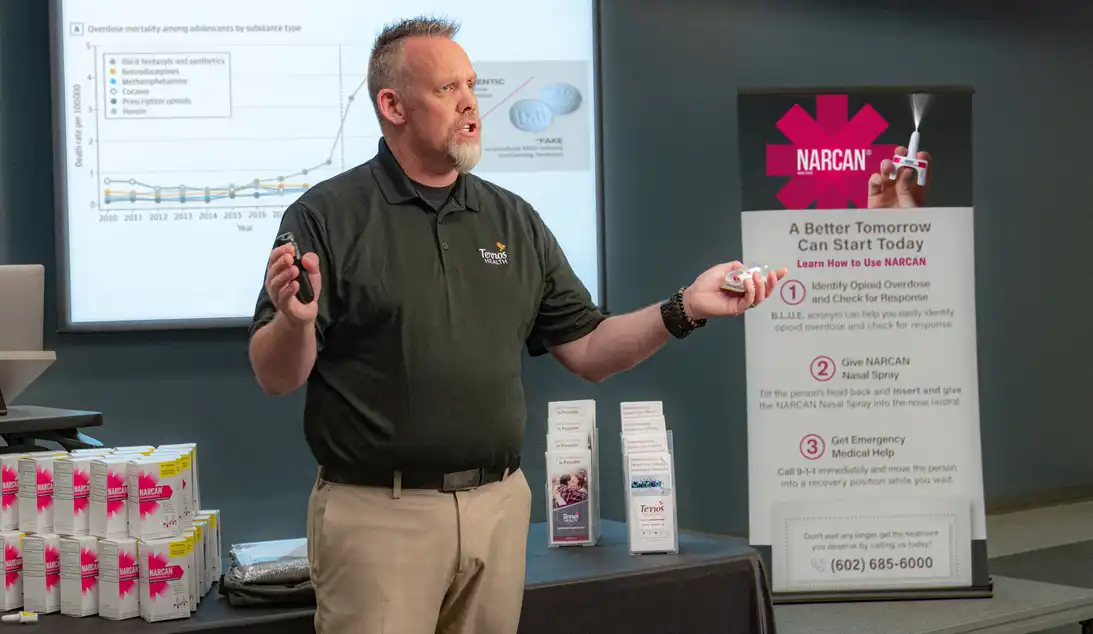 Terros Health is leading the fight against substance use at its clinics and through education. Through free training programs, we teach members of our community how to dispense a potentially lifesaving medication called Narcan, which can help reverse an overdose from heroin, fentanyl and prescription opioid medications in minutes.